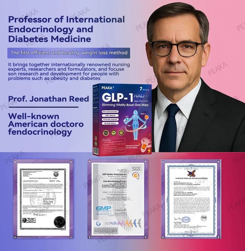 "As an endocrinologist. I am committed to finding effective and natural solutions for metabolic health and weight management. After extensive research and clinical trials with over 5.000 participants. I have found that PEAKAยฎ GLPโ1 Slimming Vitality Boost Oral Strips offers remarkable benefits for metabolism. appetite control. and overall well-being. This formula naturally supports GLP-1 activation. helping regulate blood sugar levels. curb cravings. and enhance fat burning. Its powerful blend of apple cider vinegar. turmeric. and other natural ingredients not only aids in healthy weight loss but also promotes digestive health. boosts immunity. and supports long-term metabolic balance. With the backing of modern medical research. PEAKAยฎ GLPโ1 Slimming Vitality Boost Oral Strips is a trusted. science-driven choice for those seeking a natural and effective approach to weight management and overall health."