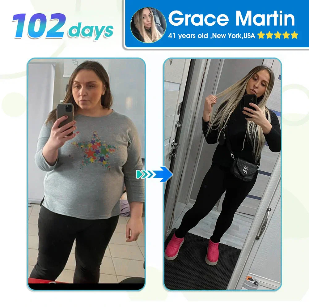 Two months in. and I never thought I'd see such a breakthrough! My family's thrilled with my transformation. I feel the vigor of my thirties. and my skin's improved. Apply one patch weekly—no side effects. just progress. It's better than any diet pill! - Linda Pearcy ⭐⭐⭐⭐⭐